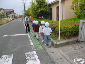 1年生は、初めての下校になります。教員と地域の方が見守りをしながら、コースごとに下校しました。