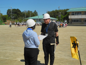 6年生は、50m走のタイムを計っていました。