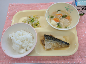 「 ごはん、牛乳、さばの照り煮、ごった汁、白菜づけ 」でした。