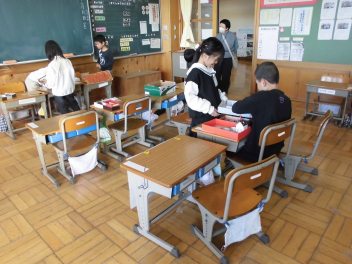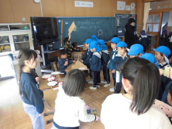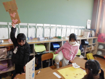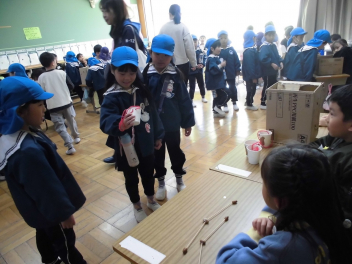 •  学区の幼稚園の年長さんが、1年生・5年生と交流するために小学校に来ました。