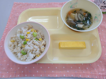 こぎつねごはんは、きつねの好物とされている油揚げと、「コンコン」という鳴き声にちなんだコーンを使った混ぜごはんです。