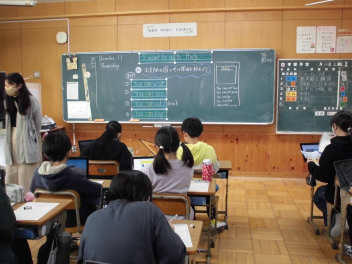 •  6年生の英語科では、自分の行きたい国や紹介したい国を、英語で紹介する活動をしています。