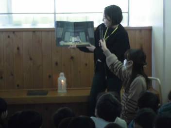 また、ひまわり学級では、5年生の子がクラスの子に読み聞かせをしていました。お話し隊の方のように絵本を見せながら、上手に読み聞かせをしていました。
