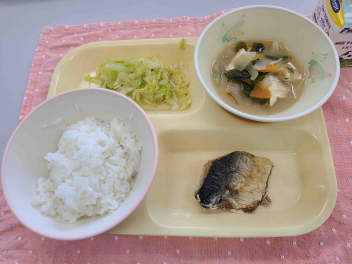 「 ごはん、牛乳、さばの塩焼き、生揚げのみそ汁、キャベツの浅づけ 」でした。
