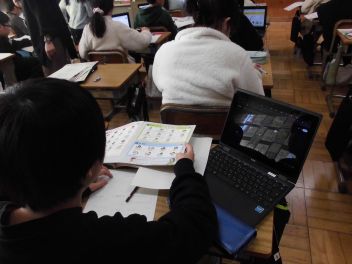 •  図画工作科で、のこぎりを使いました。木の棒を短く切り分けているところです。指や足を切らないように、注意深く取り組みました。