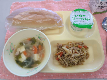 「 パン、牛乳、焼きそば、わかめスープ、ヨーグルト 」でした。