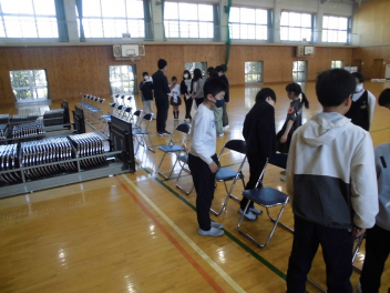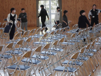 その後、5年生が、明日の卒業式のための会場づくりや清掃を行いました。みんな、6年生のために黙々と働く姿が印象的でした。明日は、きっとよい卒業式になるでしょう。