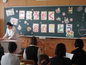 •  今日は、1学期の始業式でした。新しい教室で新しい教科書を手に、新しい仲間、新しい先生と笑顔でスタートができました。今年もいろいろなことにチャレンジして、大きく成長してほしいと思います。