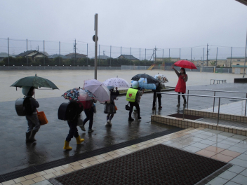 今日は、全校児童がそろう初日でしたが、あいにくの雨になってしまいました。