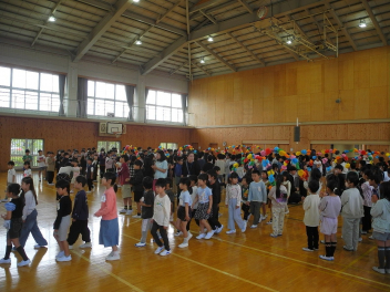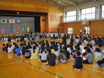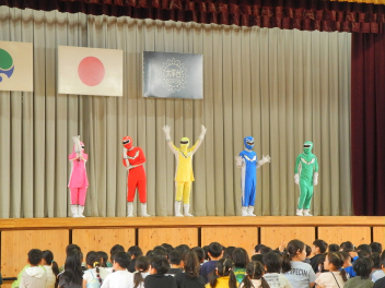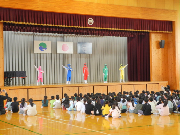 今日は、1年生を迎える会を行いました。大平台小のキャラクター「わかばレンジャー」が、1年生をお迎えしました。