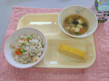 「 ごはん、牛乳、高野豆腐と大豆の甘辛あえ、おひたし、みそ汁 」でした。