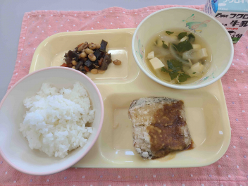 「 ごはん、牛乳、いわしのみそだれかけ、五目豆、すまし汁 」でした。