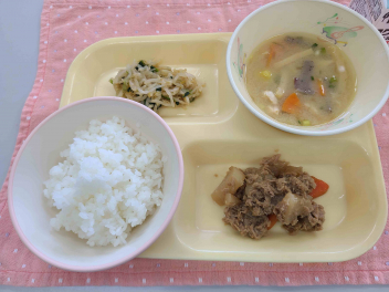 「 ごはん、牛乳、だいこんとツナの煮もの、おひたし、さつま汁 」でした。