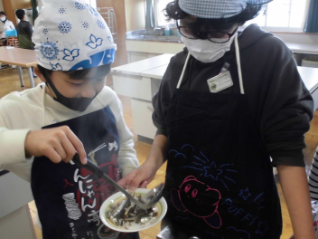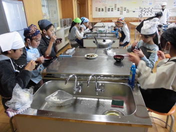 出汁は、煮干しからとりました。具は、だいこんと油揚げ、ねぎです。とてもおいしそうでした。