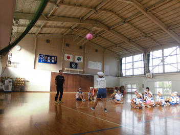 ソフトバレーボールをしています。相手にパスがわたるかな?