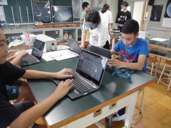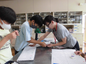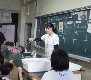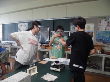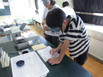 器具の使い方を確認し、実験スタートです。実験が終わると、結果や考察をタブレットに入力しました。