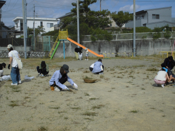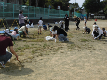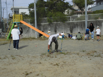 約40組の親子が参加してくださいました。ゲートボールをしていた方たちもプレーしながら草取りを手伝ってくださいました。ありがとうございました。