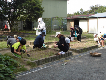 日曜日はくすのき奉仕活動を行いました。学校花壇と運動場の草取りを親子と教職員で行いました。