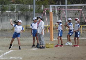 9月の体育科の授業では、新体力テストの測定を行っています。全部で8種目ありますが、今日は全学年が50m走とソフトボール投げを行いました。