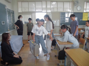 最後に〇億円の入ったケースをもち、お金の重みをひしひしと感じた子供たちでした。