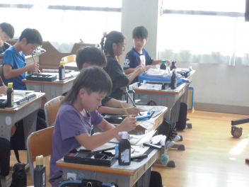 一点、一画、手本をよく見てゆっくり書く。心穏やかに集中する子供たちでした。
