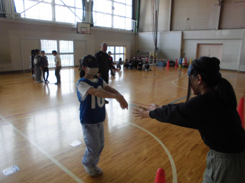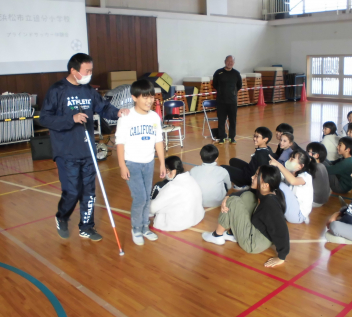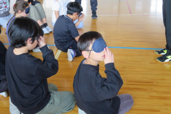 目が見えない方がどんなことで不便を感じているか、どのように私たちは手助けができるのか、目が見えなくても、工夫をすればいろいろなことができることを、「ふ」だんの「く」らしの「し」あわせについて、子供たちは交流を通して学ぶことができました。