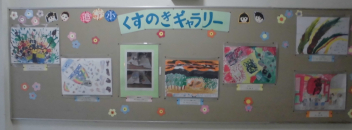 職員室前のくすのきギャラリーには各学年の新しい作品が掲示されました。もちろん、校長室にも。作品への思いがあふれたものばかりです。