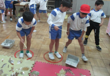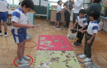 ②魚釣り(枯葉で作った魚を制限時間でどれだけ釣れるか挑戦します。)