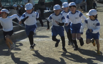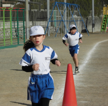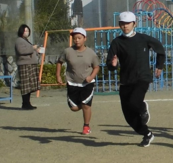 保護者の方たちが見守る中、子供たちは目標を達成しようと真剣に走りました。