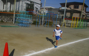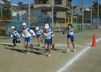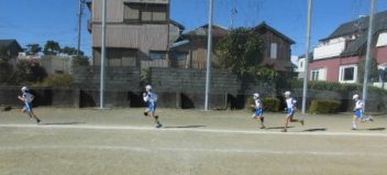 朝、運動場を見ると、すでに記録会が終わった学年の子供たちが運動場を走っていました。