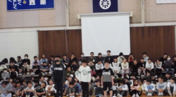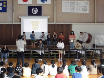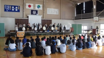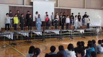 全校を半分に分け、他学年の演奏や合唱、発表を鑑賞しました。