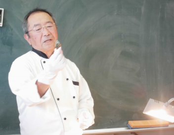 • 6年生 総合的な学習の時間です。この日のゲストは洋菓子職人の天野様です。