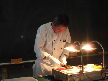 子供たちの目の前で飴細工を披露してくださいました。飴を何度も何度も練り、光沢を出します。