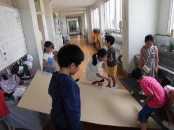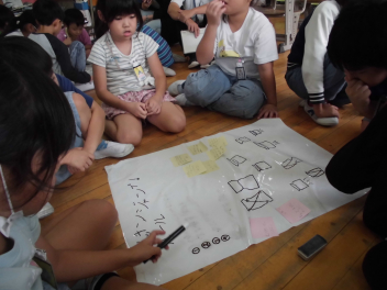 1年生が楽しんでくれるようにルールを考えたり、役割を決めたりと、張り切って活動する子供たちです。