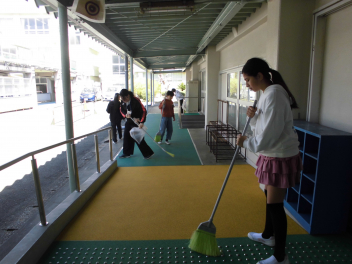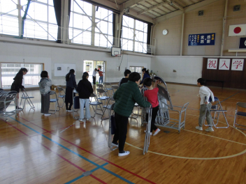 明日の入学式準備、6年生は初めての役目をしっかり果たしました。