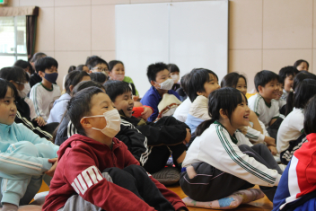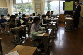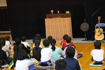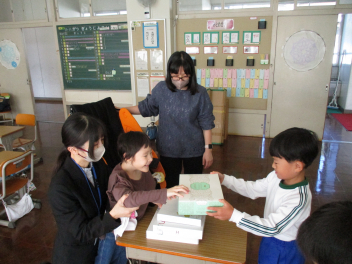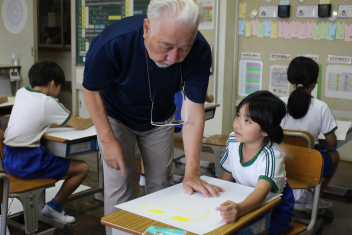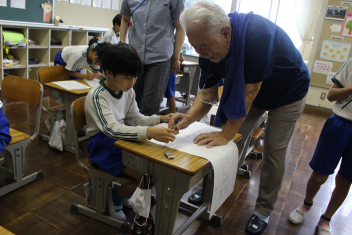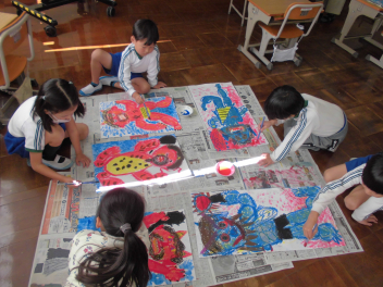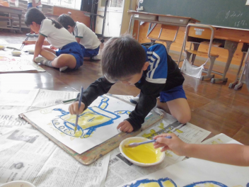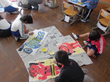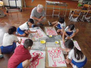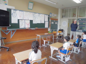 • 1・2年生の図工の時間に、絵の専門家の黒瀬先生がいらっしゃって、