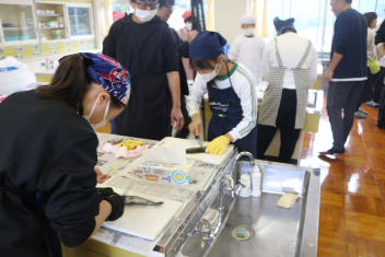 6年生は、その後、「きじ亭」の方から教えていただいて、釣った魚をさばく体験もしたまきよ
