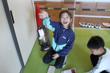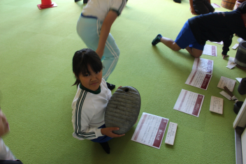 こどもたちは 「これはなんだろう?」と言いながら興味深そうに見ているまき。