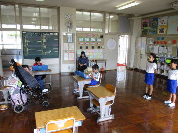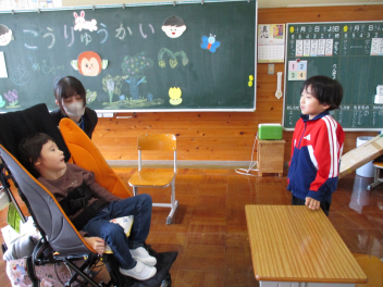 • 特別支援学校の1年生の友達が来てくれたまき~。奥山小の1年生が交流会を開いたまきよ。