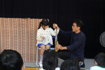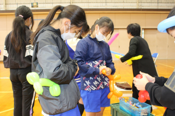 劇が終わった後、6年生はバルーンアートを教わっていたまきよ動物を上手に作っていたまき