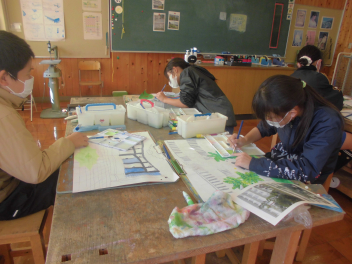 他には、体育館や、校舎の中をかいている子もいたまき~