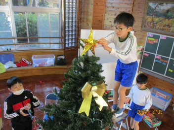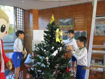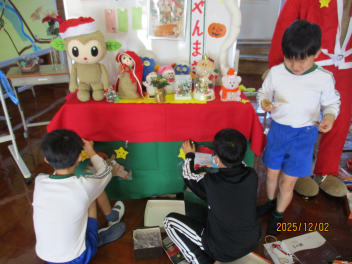 2組のみんなが今年もオクヤんまきをサンタクロースに変身させてくれたまき!!