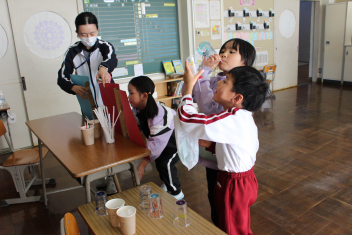 • 1・2年生の教室からなにやらにぎやかな声が聞こえてきたまきよ~!