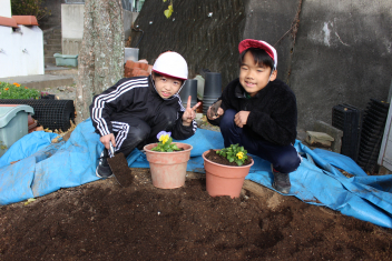 先週の金曜日は、3年生がパンジーの苗とチューリップの球根を植えてたまきsad