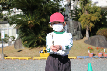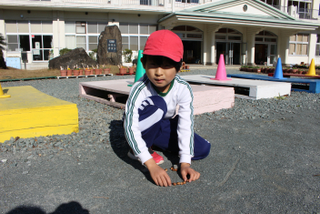 1・2年生が生活科の時間に作ったおもちゃでお店を開いていて、幼稚園生を招待し一緒に回っていたまきよ