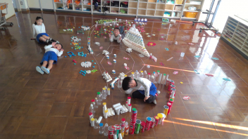 先週は、教室で身の回りにあるものを使って、いろいろな形を作ったまきよ