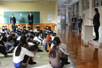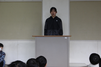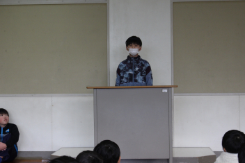 始業式では、3人のお友達が3学期に頑張りたいことを発表してくれたまき