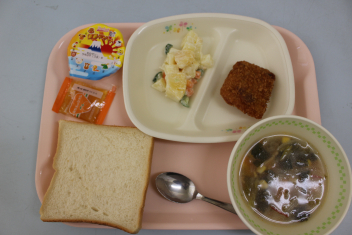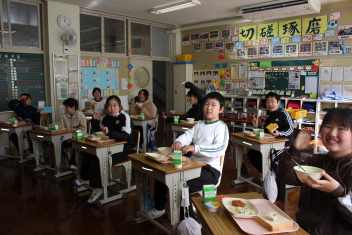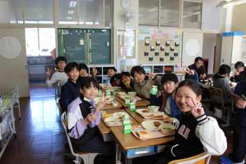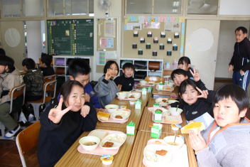給食の時間は、どの学年も美味しく残さず食べていて嬉しかったまき