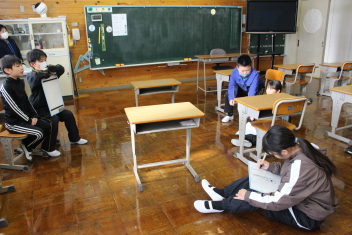 避難訓練が終わった後も、地震が起きた時に危険な箇所がないか考えながら教室へ戻っていたまき!