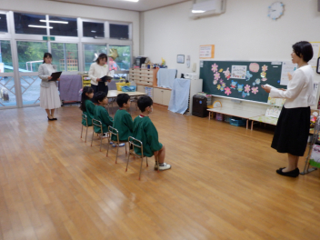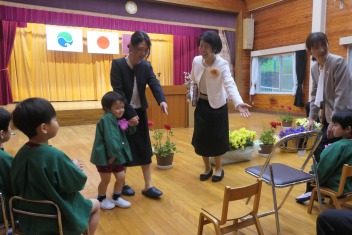 今日は、年長ひまわり組さんがお客さんになって、あたたかく見守ってくれました